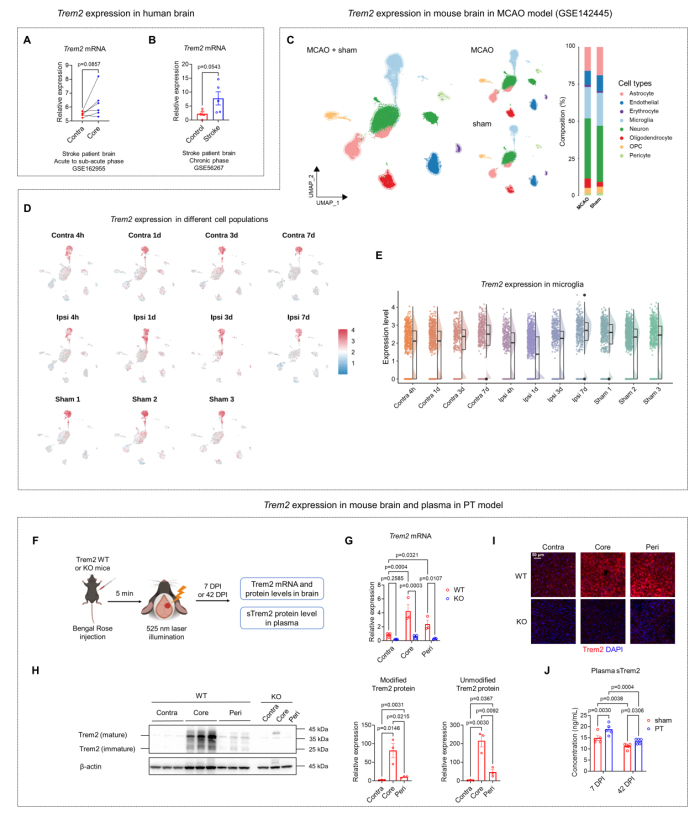 图1. 比较Trem2在MCAO模型、PT模型及卒中患者中的表达差异