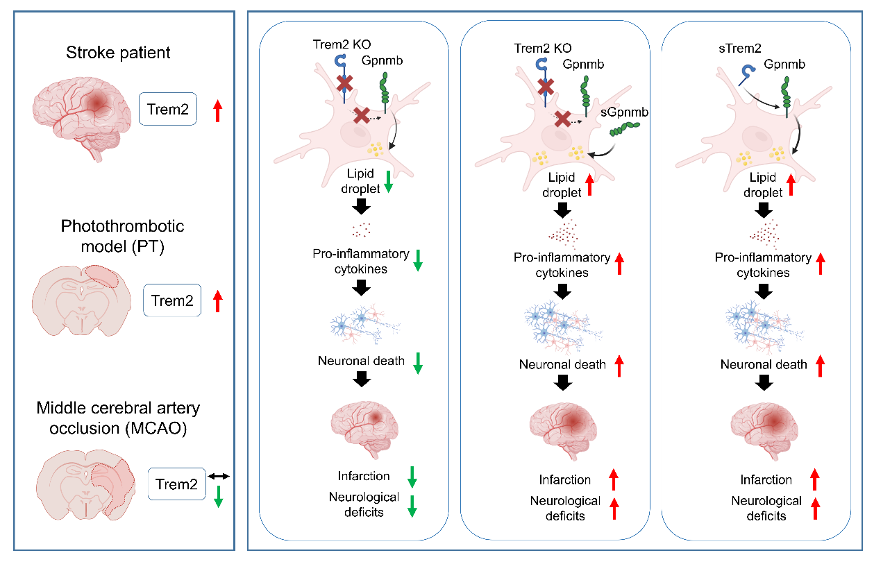 图3. 研究总结图:Trem2-Gpnmb轴介导卒中后的神经炎症反应