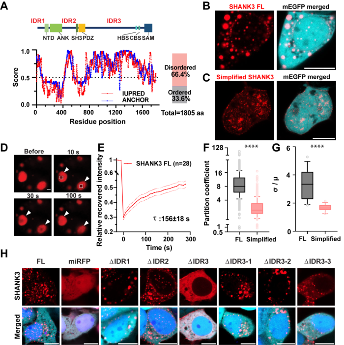 图1. SHANK3蛋白无序区介导液相分离的发生