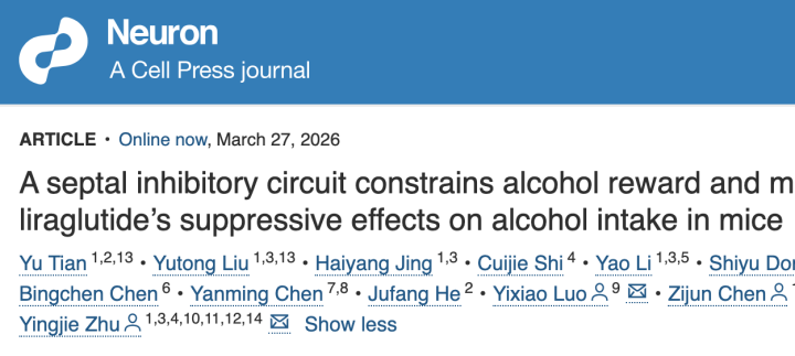Neuron丨深圳先进院脑所/深港脑院朱英杰、陈子君团队揭示GLP-1类药物限制酒精奖赏与饮酒行为的关键机制